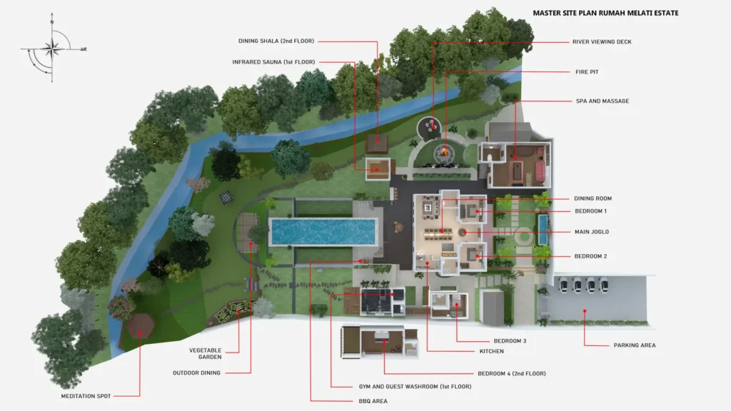 Here, time slows down. Mornings begin with fresh fruit and a warm cup of coffee. Afternoons drift by between the pool, the Shala pavilion, and shaded garden paths. Evenings are for laughter around the fire pit, long dinners by the river, or simply watching the sun fade through the bamboo.